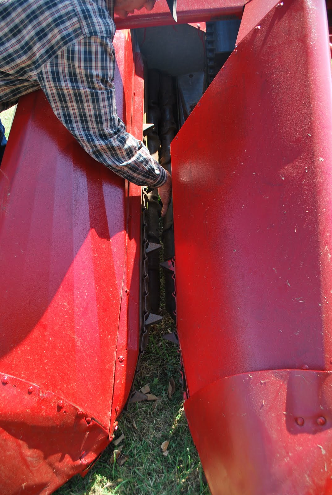 The corn comes out of this shoot when its done being separated from the stalks. So cool!Adds literal "Grit" and acts as simple metaphor of history.